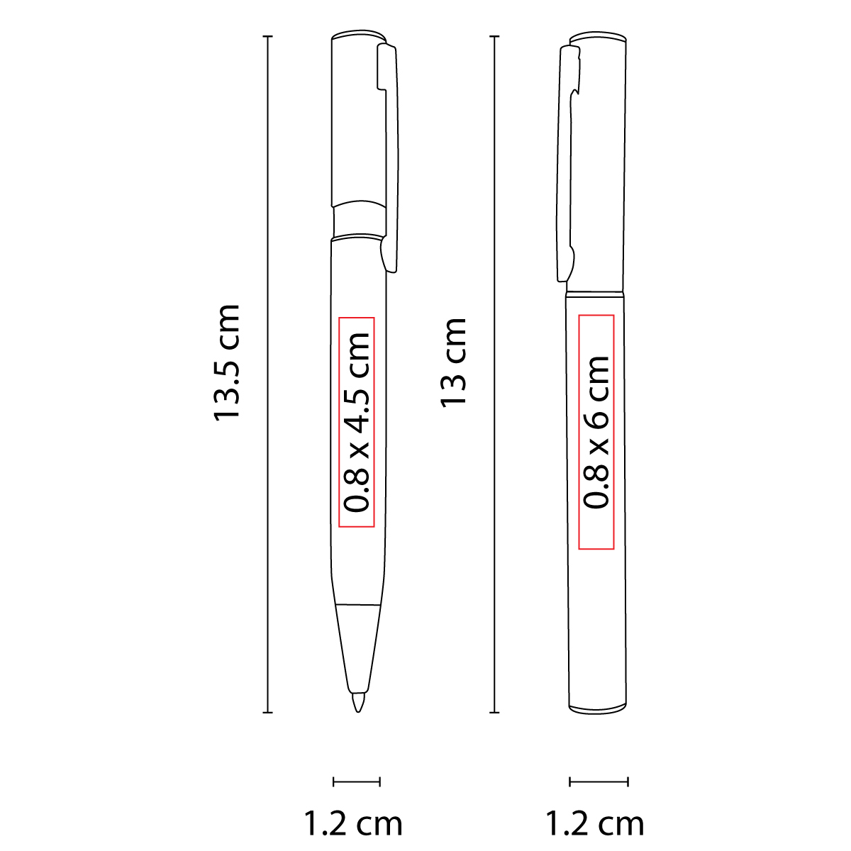 Medida: 1.2 x 13.5 cm Ball Point / 1.2 x 13 cm Roller Pen