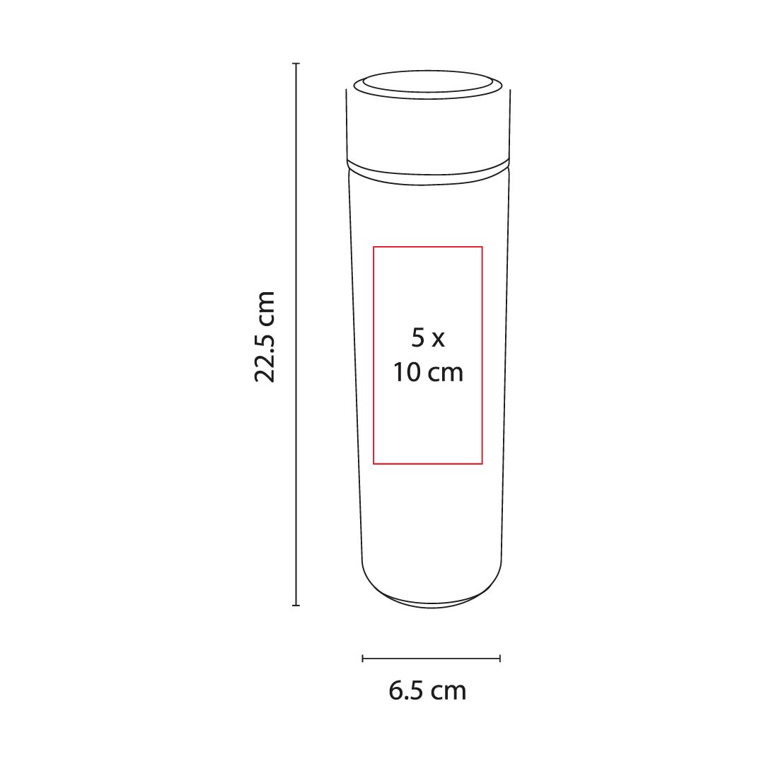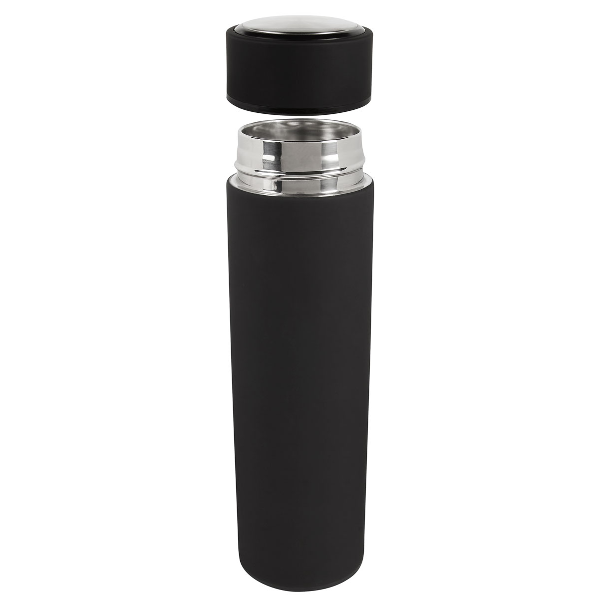 Doble pared. Cerrado al vacío. Pared interna y externa acero inoxidable. Incluye infusionador.