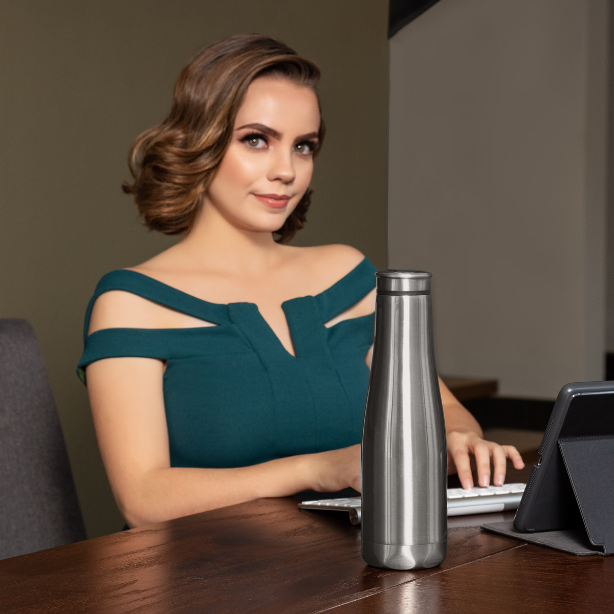 Doble pared. Cerrado al vacío. Pared interna y externa acero inoxidable.